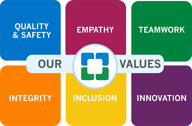 Teamwork : We work together to ensure the best possible care, safety, and well-being of our patients and fellow caregivers.